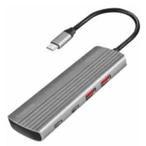 HUB USB-C => 2xUSB3.2 Gen2 tip A in 5xUSB-C3.2 Gen2 PD3.0 100W 10Gbps 20cm ALU ohišje space gray Logilink (UA0414)