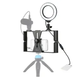 Vlog platforma je držalo za namestitev opreme za zajem videa in fotografij. Svetilka odlično omehča svetlobo in popravi barvo kože na portretni fotografiji, okvir pa omogoča namestitev vseh sodobnih pametnih telefonov širine do 8,5cm.